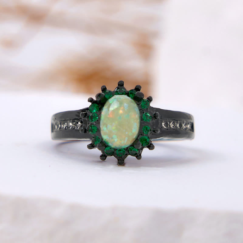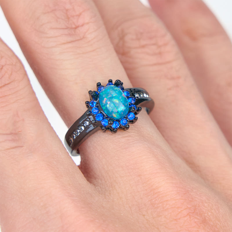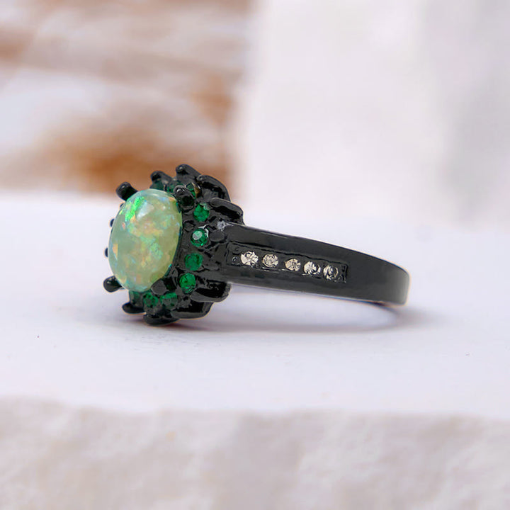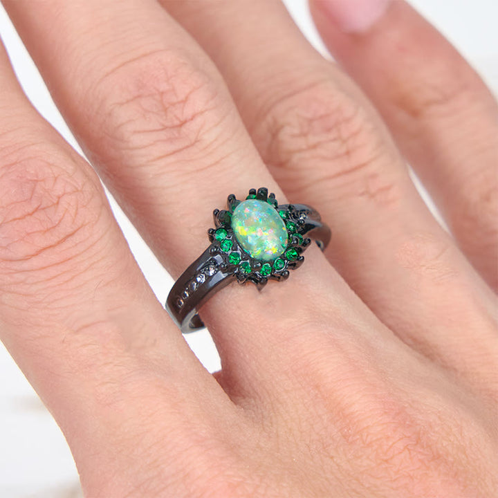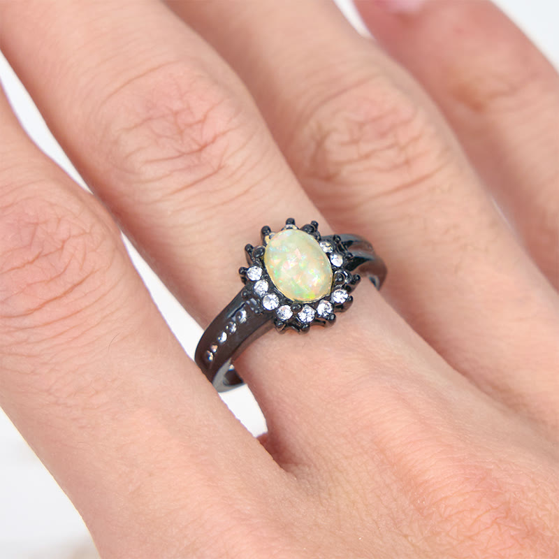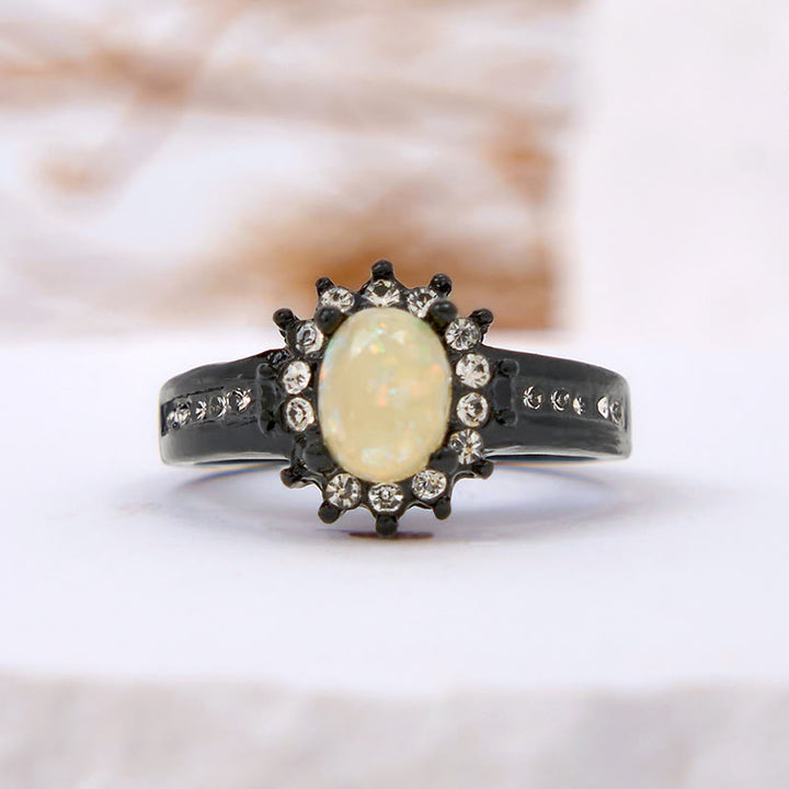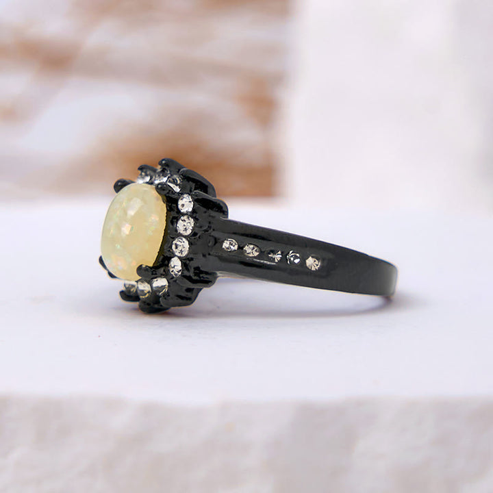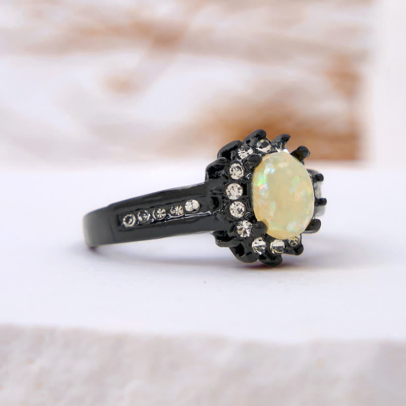 • Nom : Bague tournesol ovale en zircon blanc et opale Olivenorma