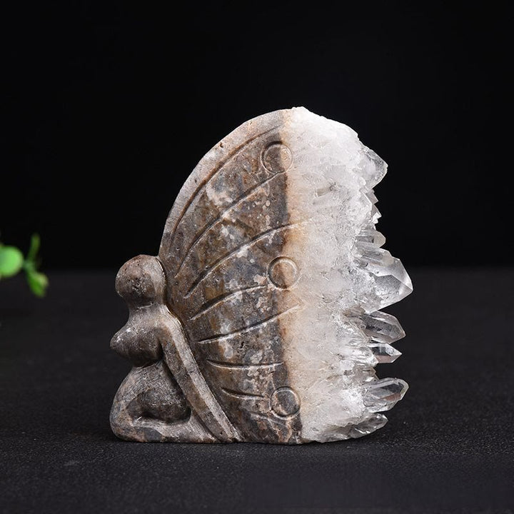 - Nom : Ornement sculpté en forme de hibou papillon en grappe d'améthyste naturelle