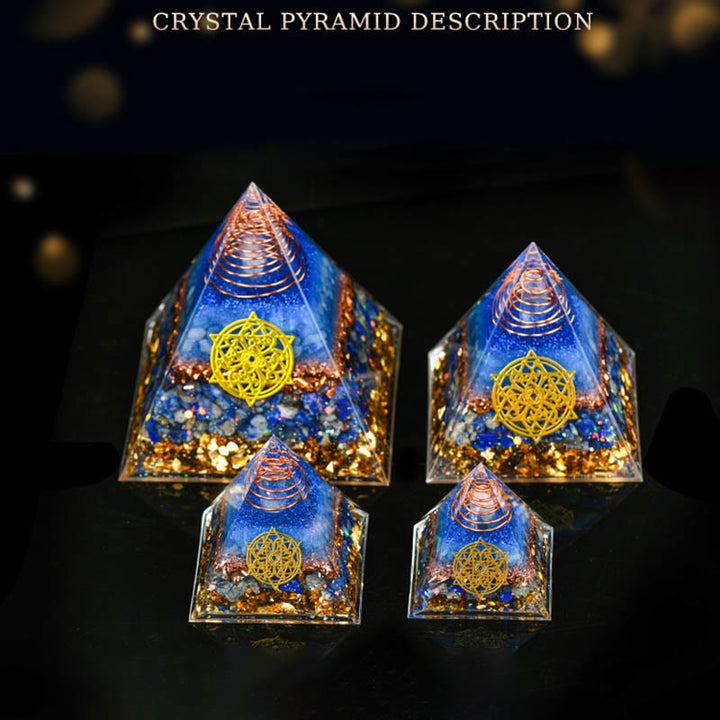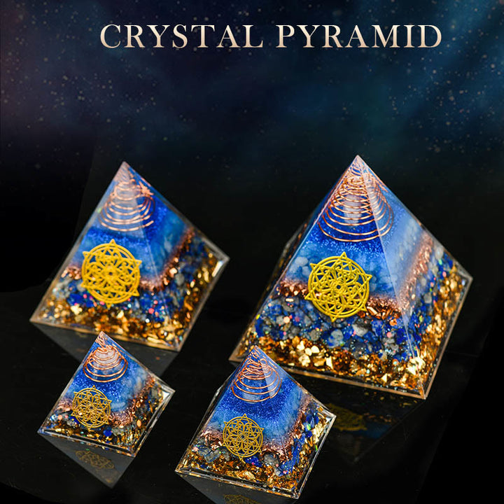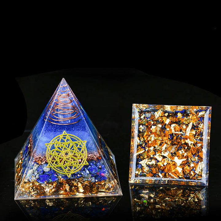 - Nom : Pyramide d'orgone en cristal transparent aventurine bleue Olivenorma 5-15 cm