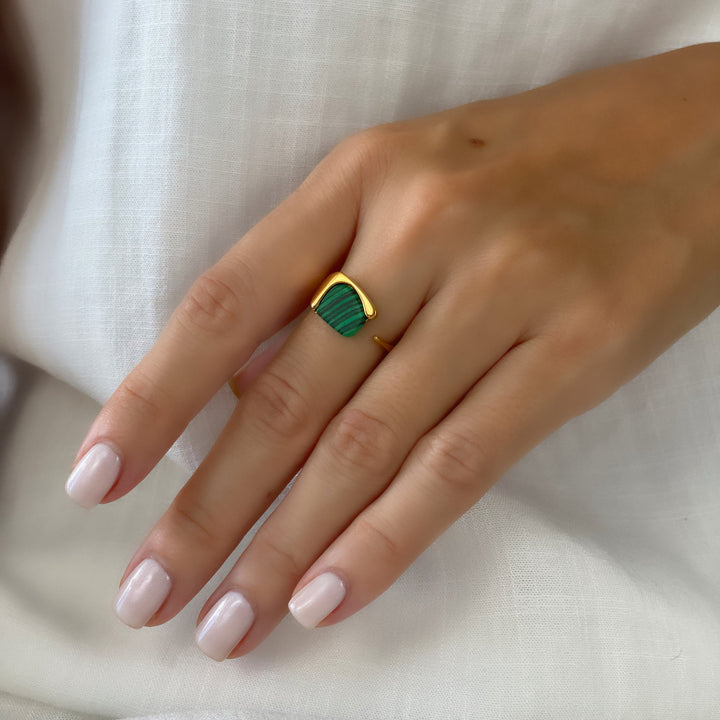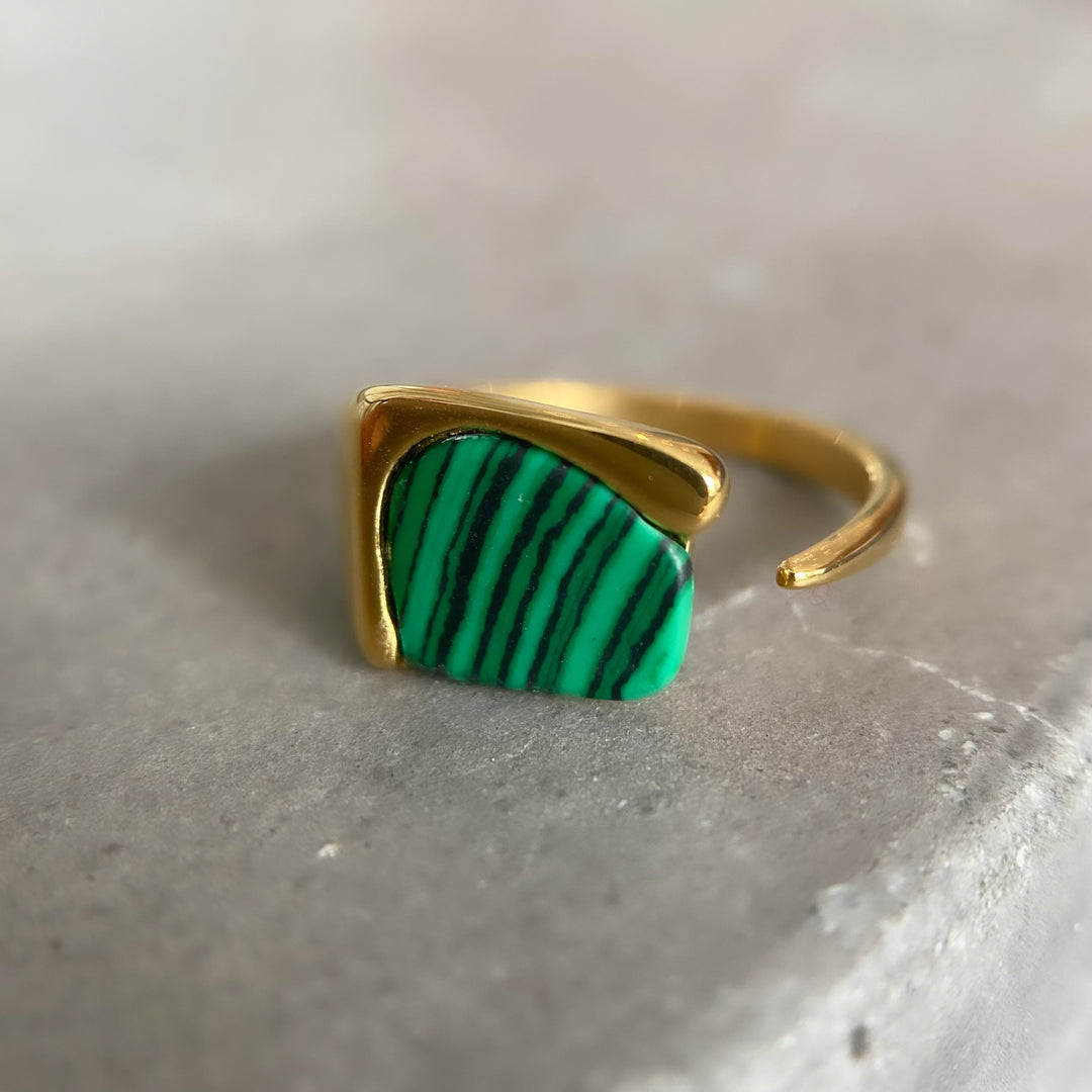 🪐Pour la conception de nos bijoux et accessoires. Cette magnifique et unique bague en malachite est l'accessoire parfait pour toute personne férue de mode. Le vert éclatant de la pierre malachite est parfaitement compensé par le placage à l'or, créant un look luxueux et accrocheur. La conception ouverte réglable de la bague signifie qu'elle peut être portée par n'importe qui, quelle que soit la taille des doigts. Et les propriétés métaphysiques de la malachite en font le choix parfait pour ceux qui recherchent un bijou avec une signification plus profonde. La malachite est considérée comme une pierre de protection puissante qui peut se protéger des énergies négatives. On pense également qu'elle favorise la guérison et l'équilibre