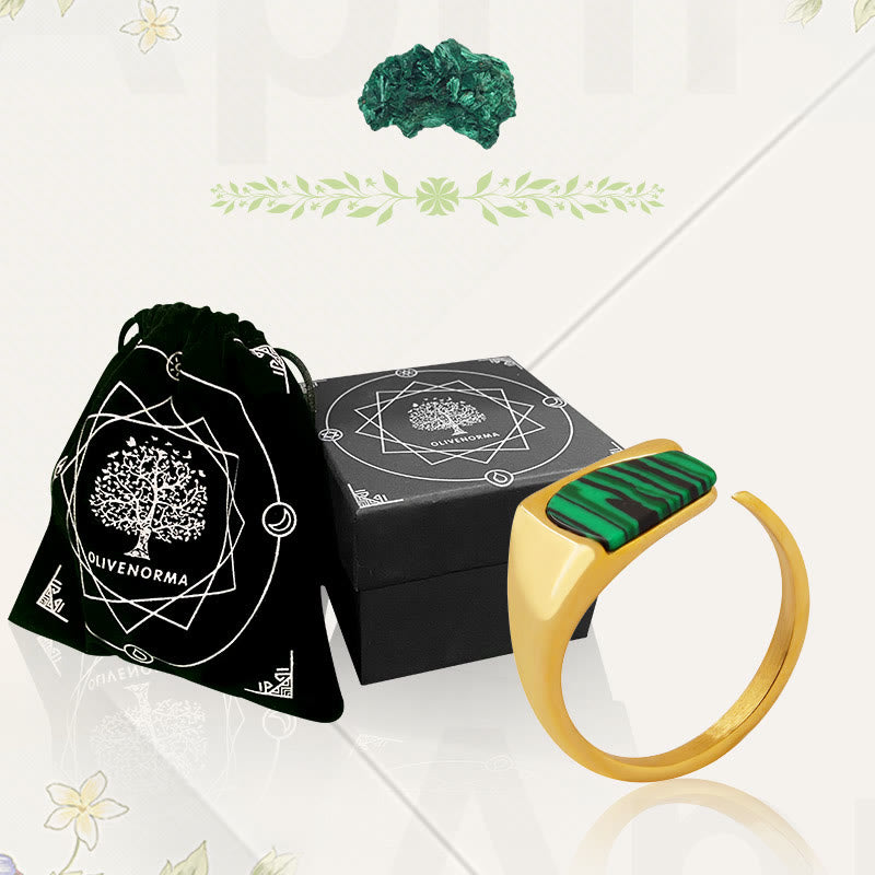 Signification de la malachite : La malachite est une pierre de transformation. Elle purifie et active tous les chakras, et est particulièrement bénéfique pour les chakras du cœur et de la gorge. On dit que la bague en malachite évacue l'énergie négative et la remplace par une énergie positive. La malachite est également une excellente pierre de protection. On pense que la malachite est un puissant protecteur contre les accidents, pendant les voyages, à la maison et sur le lieu de travail. On dit qu'elle aide à maintenir l'équilibre émotionnel, à augmenter l'intuition, à encourager la créativité et à stimuler la croissance intellectuelle.