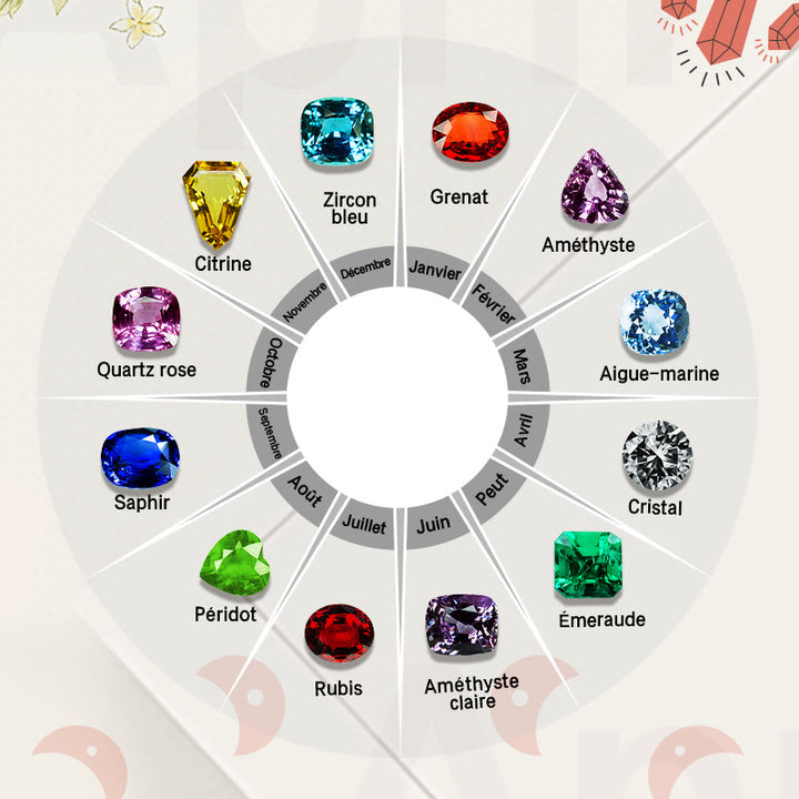 - Chaque mois de naissance de l'année est représenté par une pierre précieuse unique, appelée pierre de naissance. Les pierres de naissance individuelles ont des significations particulières ainsi que des attributs uniques et peuvent être portées pour représenter les caractéristiques uniques de la personne qui les porte.