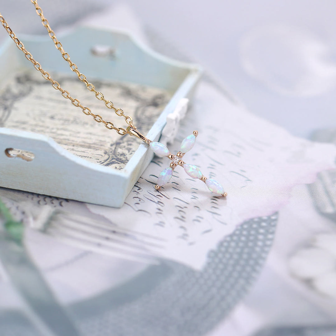 - Nom : Collier avec pendentif en croix en pierre de lune artificielle et opale Olivenorma