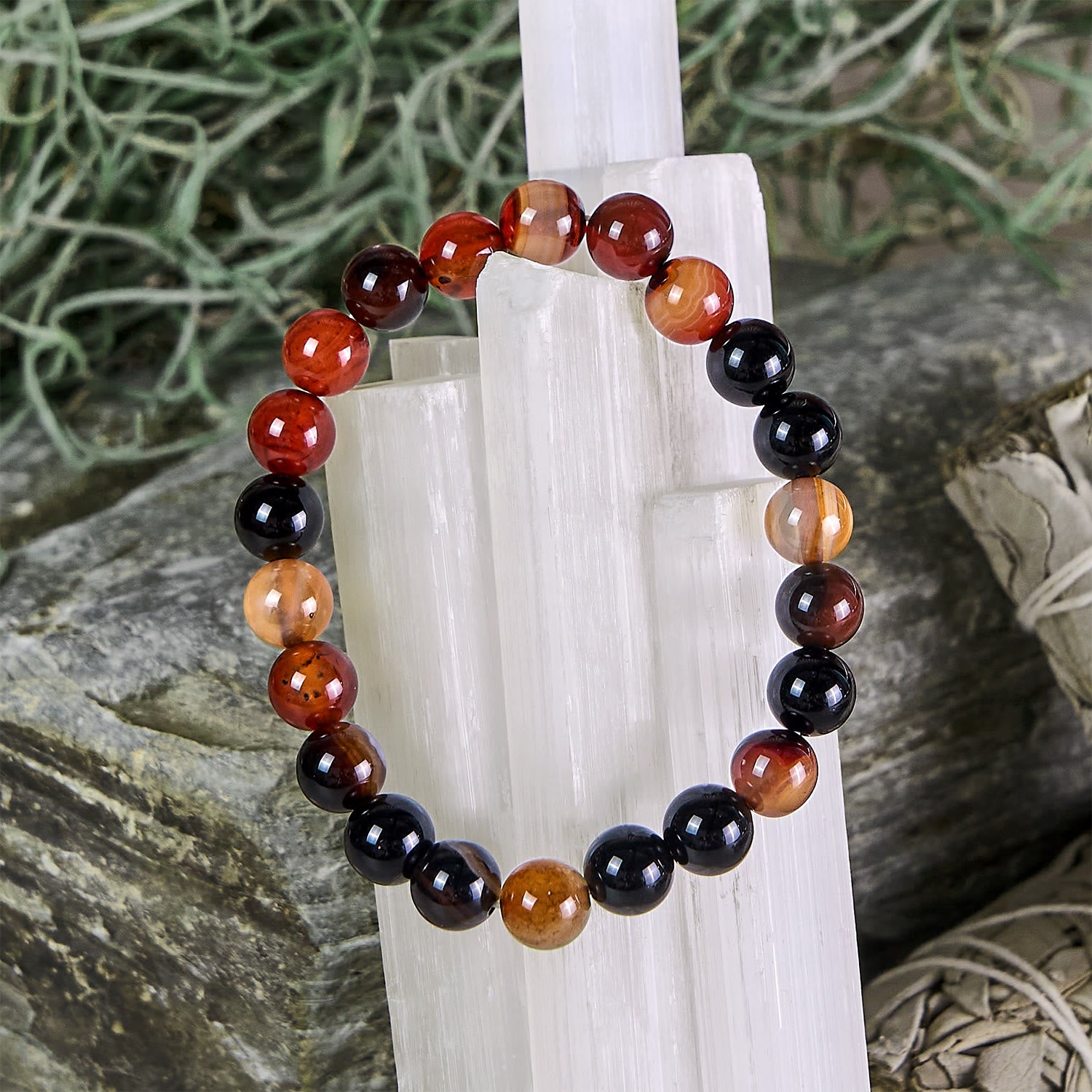 Confiant et passionné, le Lion rayonne d'autant plus grâce à l'onyx noir pour la protection, au jaspe rouge pour la motivation et à l'agate à rayures noires pour l'ancrage. Ce trio puissant nourrit la créativité et le courage tout en apaisant le cœur ardent du Lion.