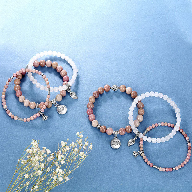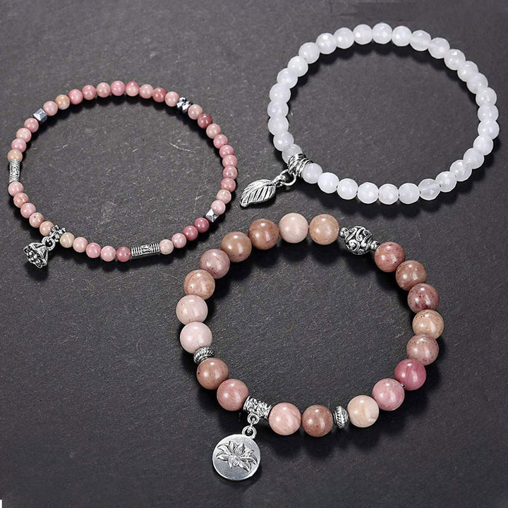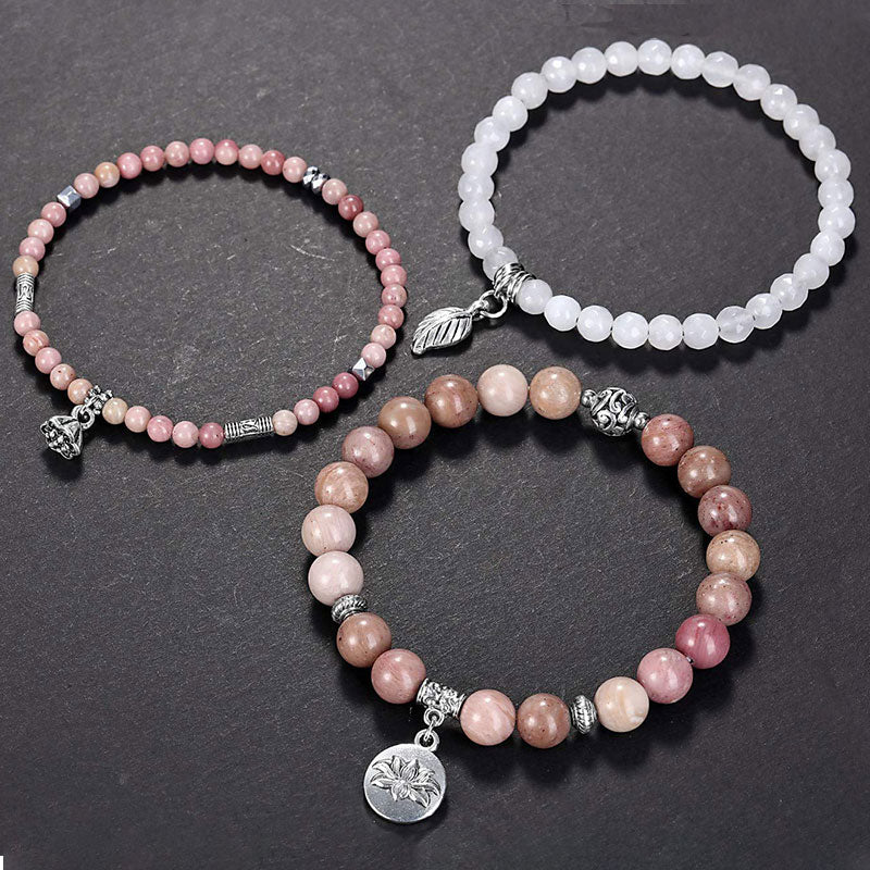 - Véritables pierres précieuses : Rhodochrosite, Quartz rose