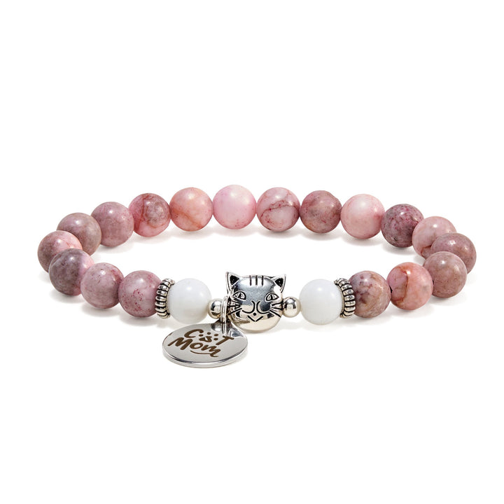 Notre bracelet en perles de pierres précieuses « Maman Chat » est une déclaration d'amour à votre âme sœur féline. Nous combinons le portrait du chat avec le charme des empreintes de pattes en pierres précieuses. Chaque perle, une pierre précieuse naturelle, reflète l'esprit unique des chats, tandis que le charm en forme de tête de chat incarne l'essence même de votre compagnon. Un lien à porter, vous permettant d'emporter son regard affectueux et son énergie enjouée partout où vous allez.