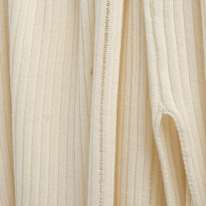 Chemisier à manches longues Olivenorma , haut en maille côtelée fendue, sweat-shirt pour femme - Beige - Taille unique - image 5