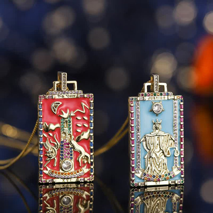 - Nom : Collier de cartes de tarot majeures en émail Olivenorma