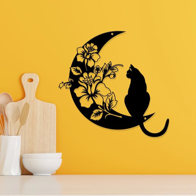 - Nom : Décoration murale en métal avec croissant de lune et chat Olivenorma