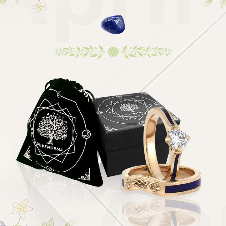 Les vraies flammes jumelles sont unies en toutes choses, corps, esprit et âme. L'alliance parfaite doit être une représentation de cela : un symbole de votre amour éternel, une illustration parfaite de l'unité entre vous et votre partenaire. Cette magnifique bague de mariage en lapis-lazuli à nœud celtique a été soigneusement conçue pour réunir tous les éléments les plus importants d'un mariage réussi dans un magnifique ensemble de bijoux. Les fils entrelacés de sa conception n'ont ni début ni fin, s'enroulant autour d'eux-mêmes dans une danse éternelle de grâce et de partenariat.