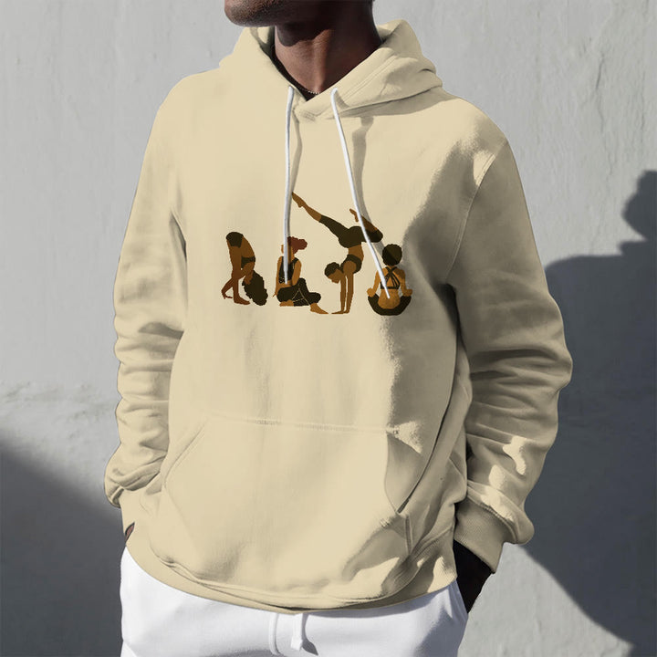 Adoptez une activité physique en pleine conscience avec notre sweat à capuche unisexe, orné d'un imprimé unique de postures de yoga progressives, symboles de croissance et d'équilibre. Conçu pour le confort et le style, il offre une coupe décontractée et une poche avant polyvalente.