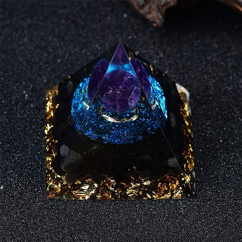 Avec cette pyramide en pierres précieuses orgones, vous pouvez être assuré de son énergie orgone curative et inaugurer une abondance de chi magnifique. Elle est ornée d'un tourbillon de cuivre et remplie de deux magnifiques cristaux et de copeaux de métal. Tous ces composants travaillant ensemble ont le pouvoir de transformer l'énergie négative en quelque chose de constructif. Avec l'aide de cette pyramide orgone vive et extrêmement vibrante, dites adieu à la stagnation et dites oui à l'équilibre des corps spirituel, émotionnel et physique.